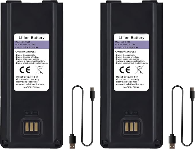 BAOFENG 2 Pack UV-25 Battery BL-UV25 for UV-25 Pro Max Radio Type-C Charging BL-UV25 High Capacity Li-ion Battery DC7.4V for Walkie Talkie Accessories with Cables