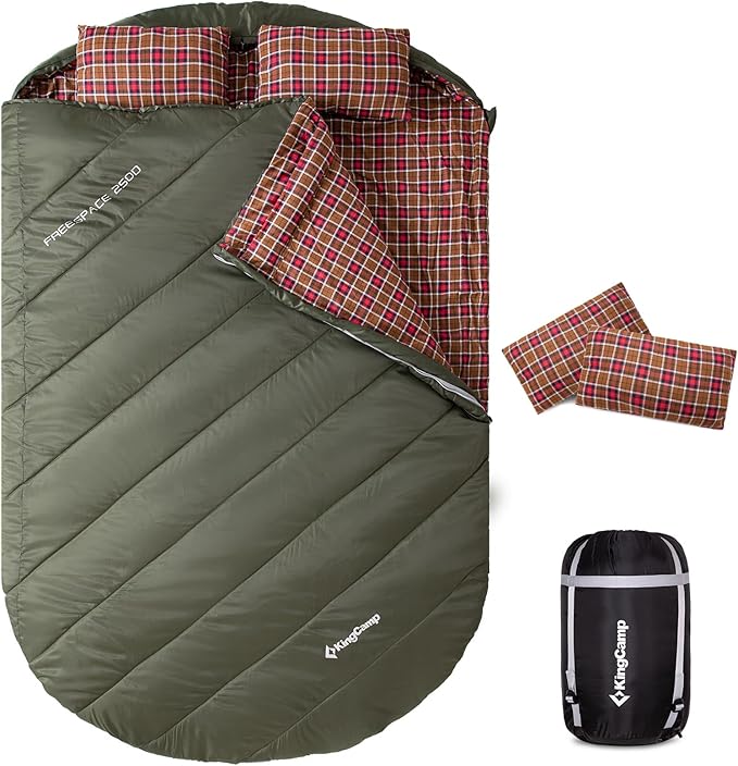 KingCamp Double Sleeping Bag for Adults, Queen Size 2 Person XXL Flannel Sleeping Bag, Waterproof Lightweight Flannel Quilt with 2 Pillows, Perfect for Couples Family Camping Hiking
