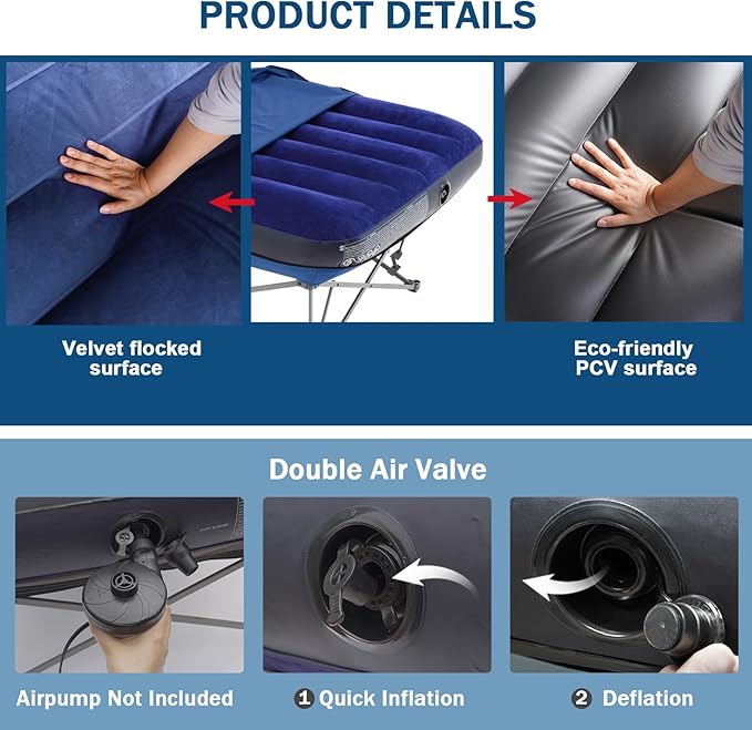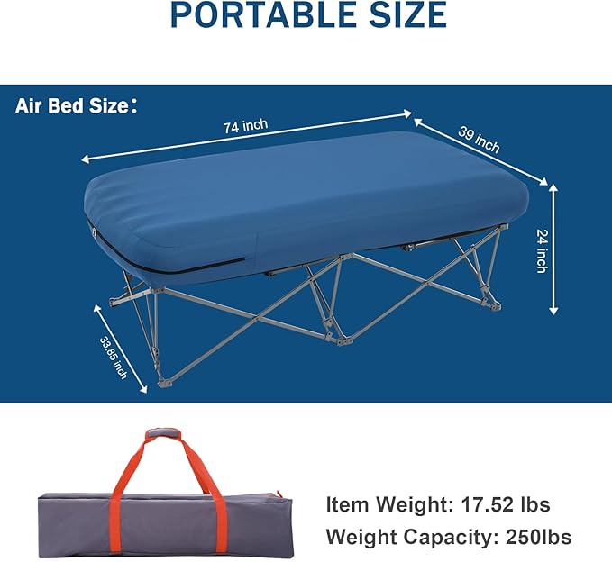 - Quick Setup: Easy to inflate and deflate,this twin size cot comes with a carrying bag for convenient storage and transport. Note: Air pump not included