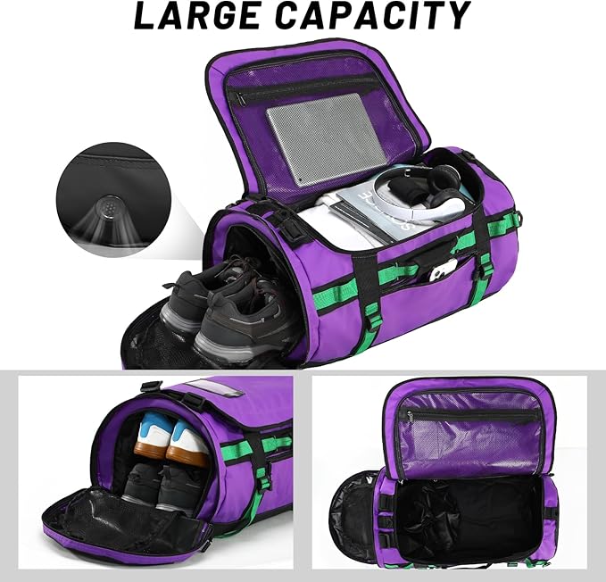 MIER Large Duffel Backpack Sports Gym Bag with Shoe Compartment, Heavy Duty and Water Resistant, Purple, 90L