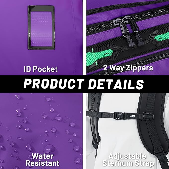 - Functional Construction ---- Daisy chain loops and "D" rings on strap for extra attachments; Innovative compression strap system helps compact large loads; Smooth "MIER" brand zipper and strong buckles, box-stitched on every stress points, being more durable and tough, make MIER bag ready for a lifetime of adventures