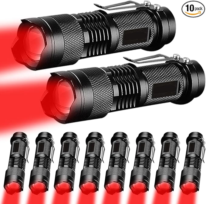 - ZOOMABLE HANDHELD LED RED LIGHT: The red light flashlight is suitable for different purposes,Adjustable focus range for different situations, supporting zoom in and zoom out; it made of compact aluminum alloy shell, non-slip and waterproof, mini size, with a small body clip, easy to carry and hold.