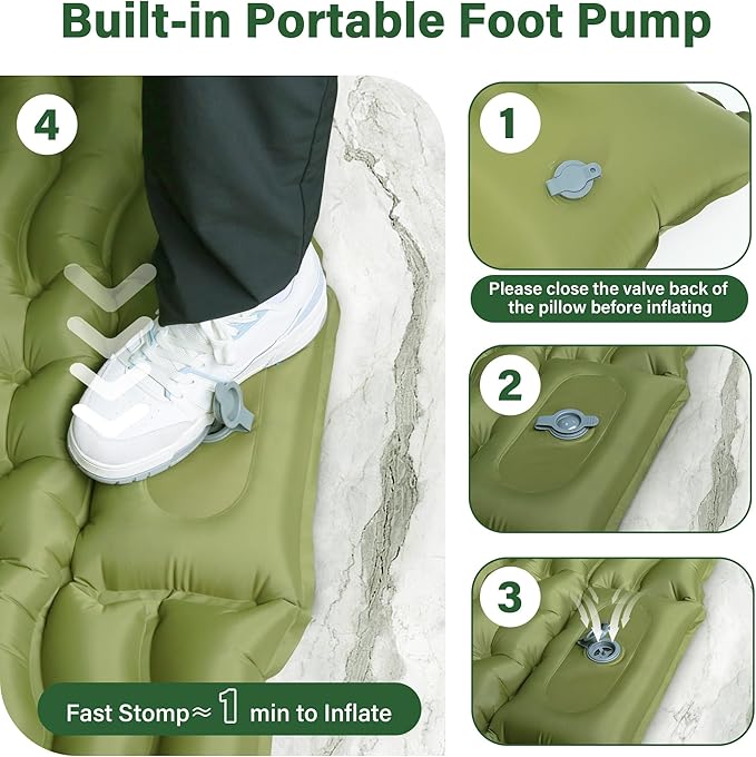 - Special Feature : camping sleeping pad built in foot pump, sleeping pad for camping single, lightweight sleeping pad for backpacking, self inflating sleeping pad for camping, camping sleeping pad with pillow camping sleeping pad built in foot pump, sleeping pad for camping single, lightweight sleeping pad for backpacking, self inflating sleeping pad for campi… See more