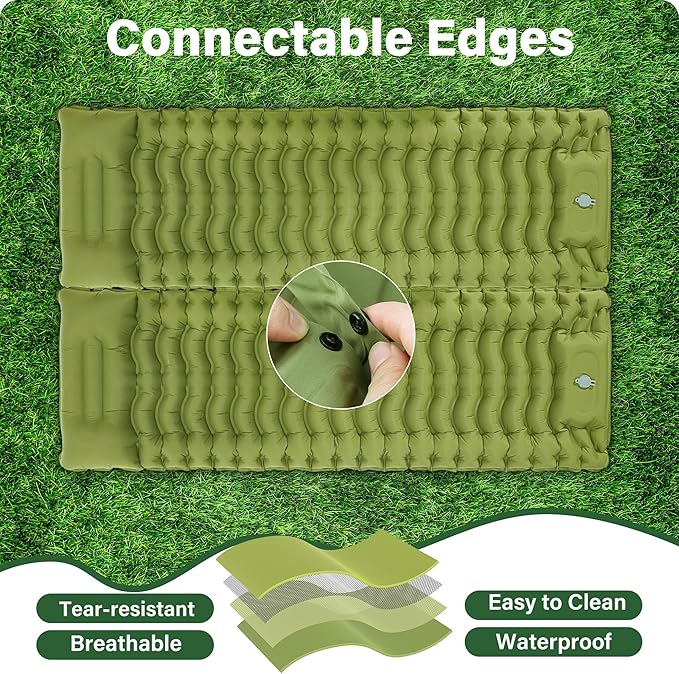 - Leak-Proof Design for Lasting Comfort:We understand the frustration of a camping pad that quickly loses air, so we've enhanced our design to address this issue. Featuring high-quality leak-proof valves and multi-layer composite materials, our sleeping pad significantly improves air retention, ensuring it stays inflated throughout the night. Whether you're tossing and turning on rough terrain or using it for extended periods, you can count on stable support and comfort, allowing you to sleep peacefully outdoors.