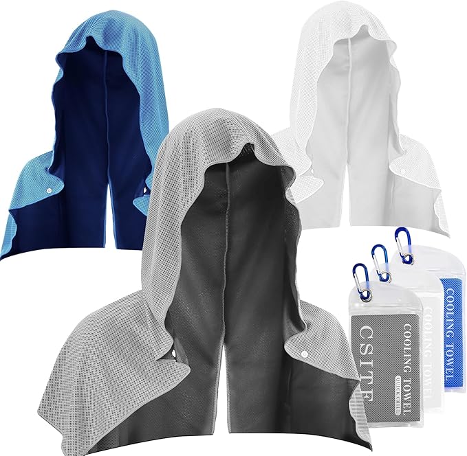- 【DESIGN FEATURES】: Measuring "29x12", the cooling hoodie towel offers ample coverage for your neck and face and other body areas. Expanding the size brings better cooling effects. Crafted from high-quality materials, these towels are durable and longevity, providing a dependable, cost-effective cooling solution for the long term. Feel free to contact us for any issues.