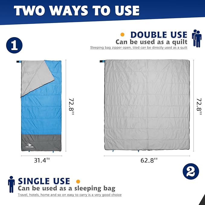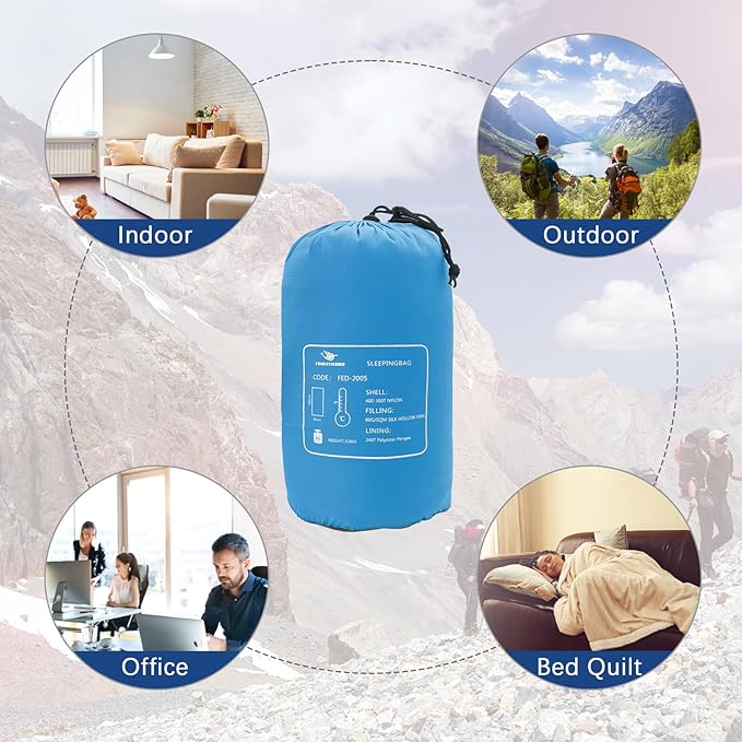 - 【Easy to use】 When using, just take the sleeping bag out of the packaging, unfold the sleeping bag, get into the sleeping bag to rest. Can also be used as a sleeping bag liner for extra warmth. Double warm is like coming home.