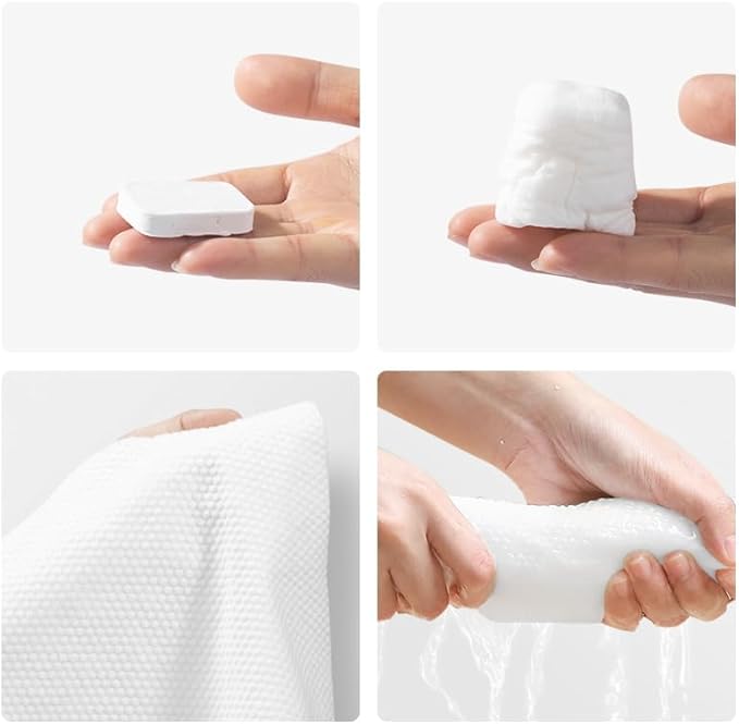 - PORTABLE AND HYGIENIC: Package contains 20 candy wrapped towels. Each towel is individually wrapped to ensure the hygiene and cleanliness of each compressed towel. Compact size (including bag), only 2.5 * 1.4 * 0.4 inches, 0.32 oz. [MULTIFUNCTIONAL TOOL] The large size disposable towel is suitable for kitchen, office, travel, sports and other occasions. It will be your great travel towel or camping towel. SAFE AND NO FRAGRANCE: The towel does not contain toxic chemicals, preservatives, fragrances or added dyes. Translated with