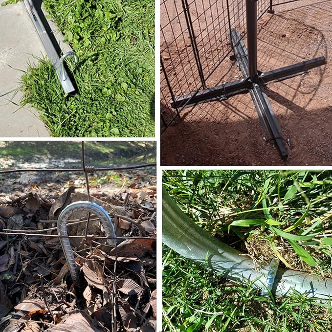 Rebar Stakes 12 Inch 10 Pack Tent Stakes Heavy Duty Metal J Hook, Fence Stakes for Trampoline, Fence, Camping Tent (9, J-16 x2/5")