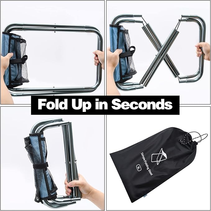 2 Pack Camping Stool, 16in Tall Large Size Folding Stool with Carry Bag, Aluminum Alloy Bracket, 1.5lbs Lightweight, Load Capacity to 300lbs, for Travel, BBQ, Fishing(2 Pack Grey)