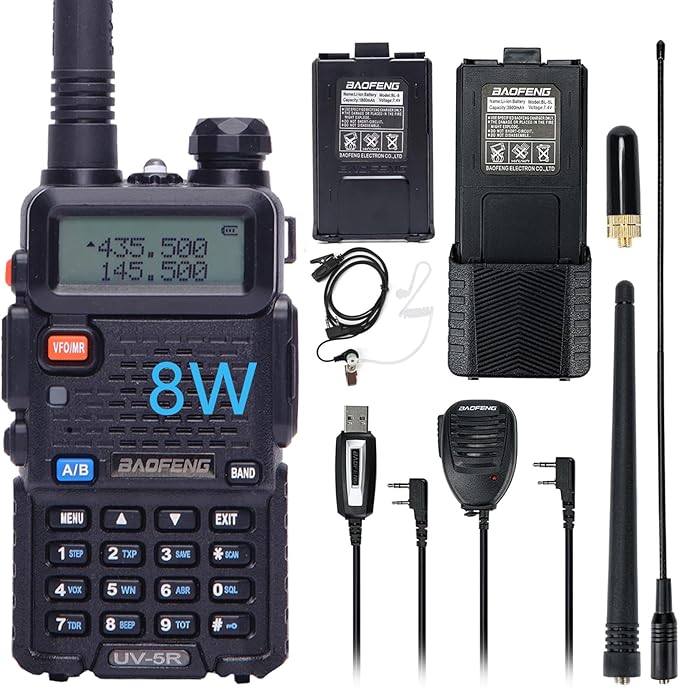 BAOFENG UV-5R 8W Ham Radio Handheld 2 Way Radio Long Range Dual Band VHF UHF Rechargeable Amateur Portable Walkie Talkie for Adults Hiking Hunting Camping Skiing Trip, Chirp Compatible