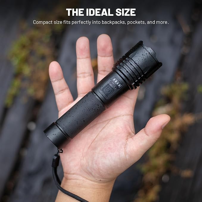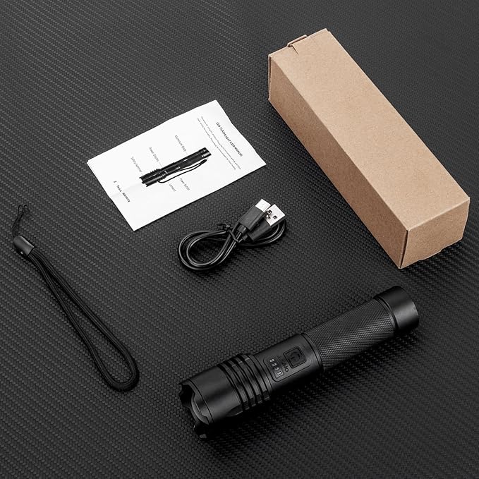 - LONG ΒATTERY LIFE: Say goodbye to frequent recharging. Our P109 flashlights high lumens rechargeable boast impressive run times, offering an impressive 12 hours of continuous operation in low light mode, thanks to its large capacity rechargeable ΒATTERY. Working time is twice as long as that of most rechargeable flashlights available in the market.