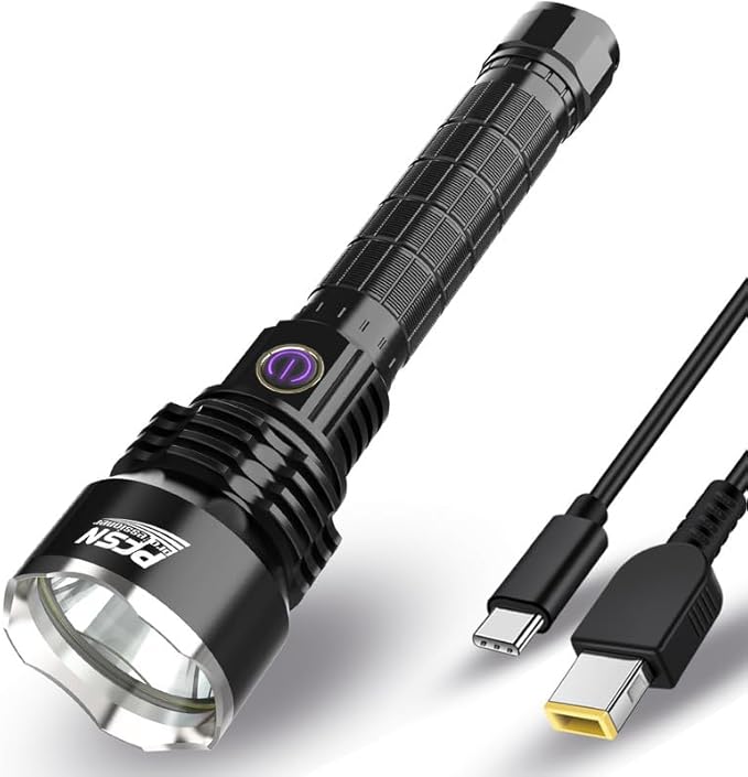 Brightest Rechargeable Flashlights High Lumens - PFSN 6000LM Super Bright Tactical Flashlight IPX65 Waterproof, 400M Long Throw, 20Hrs Lasting, Best Powerful LED Flash Light for Camping Hiking Hunting