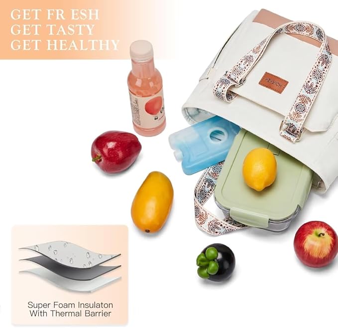Lunch Bag Lunch Box Women - Leakproof Insulated Lunch Cooler Bag for Women - Large Lunch Tote Bags Adults, White