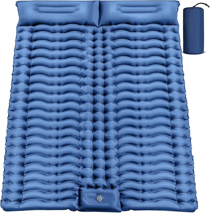 Double Sleeping Pad for Camping - Self Inflating 4" Extra-Thick for 2 Person with Pillow Built-in Foot Pump Inflatable Sleeping Mat for Backpacking, Hiking, Traveling, Tent