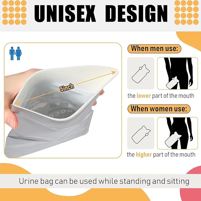 - Wide Application: disposable urinal bag is suitable for vomiting, traffic jams, urgent urination, hiking, cycling, Frequent Micturition, and more emergency on multiple occasions.Great for babies, pregnant women, or patients who need it.