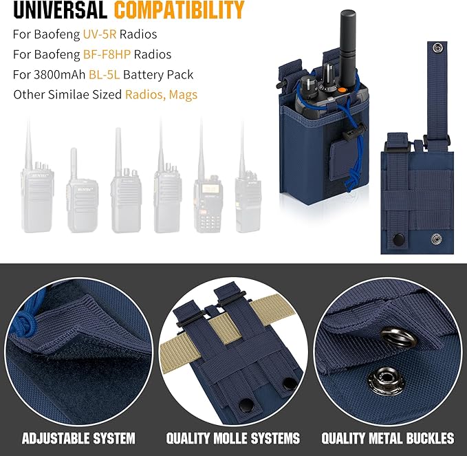 - Adjustable Fastener Design: elastic cord and detachable tape loop to secure the radio inside the radio pouch. The detachable tape loop inside the bag can be adjusted to tighten the radio at different height.