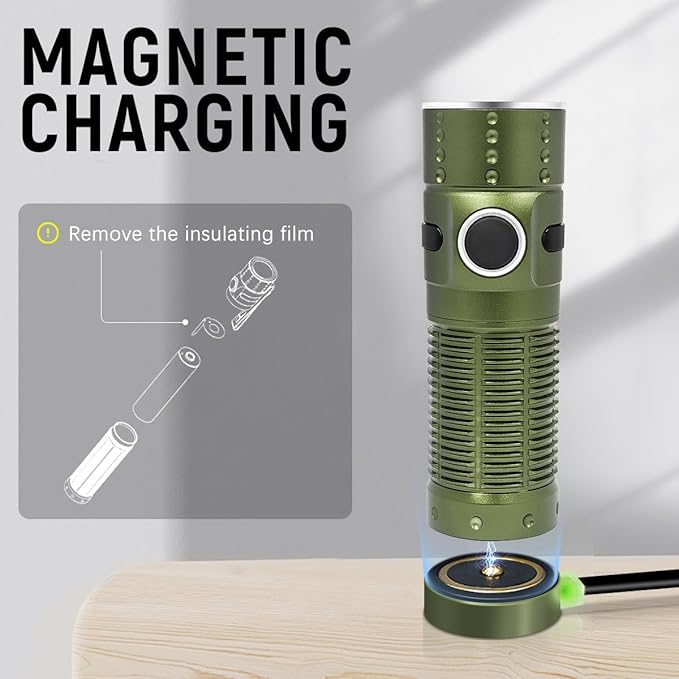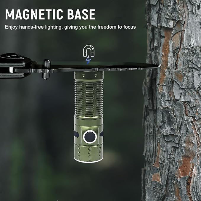 - 【Hands-free Convenience】The flat magnet tail allows it to adhere firmly to iron, enabling you to light up without holding it. Magnetic charging base is designed for convenience; just place the led flashlights on the base, making recharging as effortless as possible. Supports replacement battery of the same model, offering flexible power supply. This is particularly good for long time outdoor adventure.
