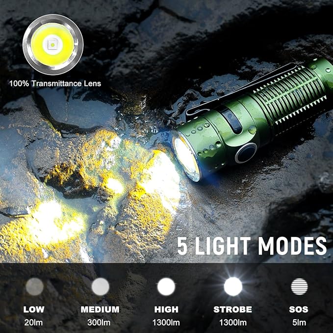 - 【Durability Redefined】Made from the highest-grade 7075 aluminum and enhanced with a titanium plating, it ensures remarkable strength and lightness but also provides scratch resistance,wear and waterproof. Featuring a top-quality TRI lens with a 100% light transmittance rate, the o flash light guarantees that its beam remains clear and luminous, even with prolonged use, maintaining the ideal brightness without diminishing over time.