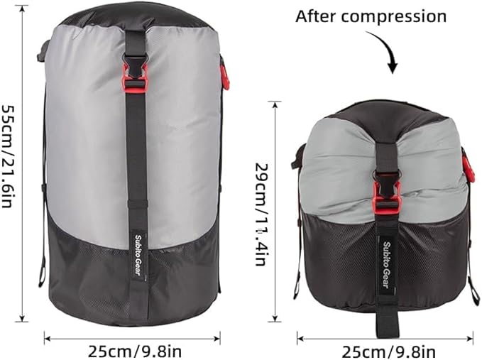 - Space-saving: Keep your load more manageable with our compression sack sleeping bag. Allow you to reduce the occupied space by as much as 40%! Ideal for carrying a large sleeping bag, laundry, clothing, bedding or other sundries in outdoor activities.