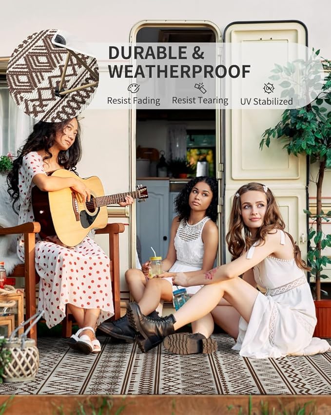 MontVoo Outdoor Rug 8x10 Waterproof Outdoor Patio Rug Mat Reverisble Plastic Straw Outdoor Rug for RV Camping Picnic Beach Balcony Boho Beige Brown