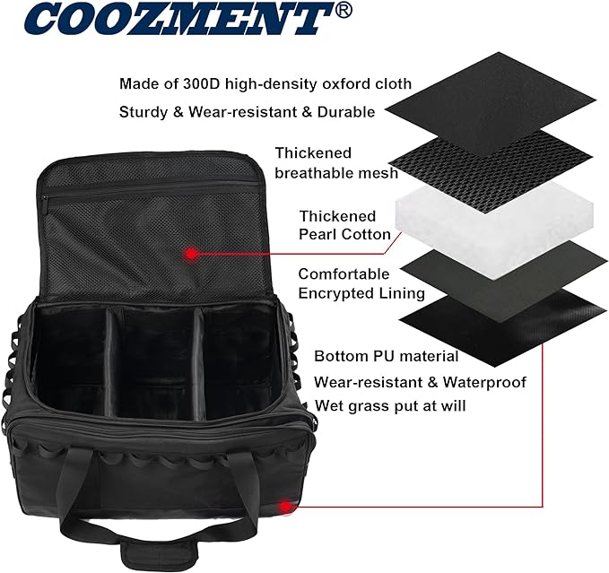 - 👍A MULTI-FUNCTIONAL DUFFEL BAG - COOZMENT bag is not just an outdoor camping bag, it can be suitable for picnic, gym, travel, soccer or basketball gear, apparel, you can equally use it as a tool kit.SIZE: 19" L x 12.2" W x 10" H. It is a versatile storage bag for your camping, hiking and travelling.