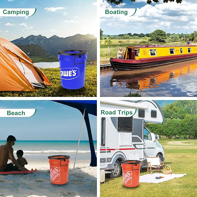 - 【Compact and Portable】The toilet seat for 5 gal bucket is compact and portable, ideal for outdoor activities like camping, hiking, boating, fishing, boat trips, etc.