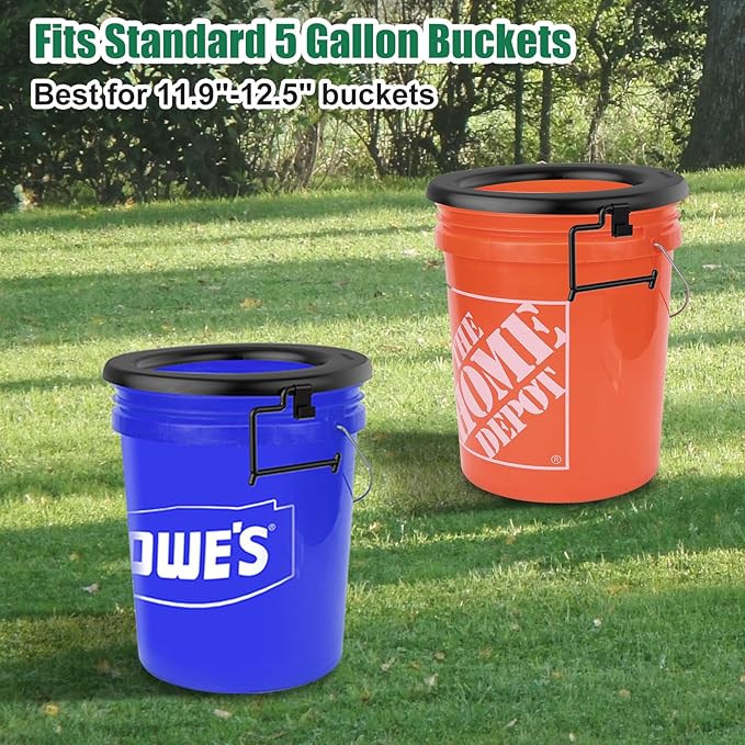 - 【Universal Fit】Effortlessly convert your 5 gal bucket into a portable toilet with the PAHTTO toilet seat. Widely compatible for standard 5 gallon/ 19 litter buckets with diameter 11.91-12.5 inch. Specifically tailored to fit Home Depot and Lowe’s 5-gallon buckets.
