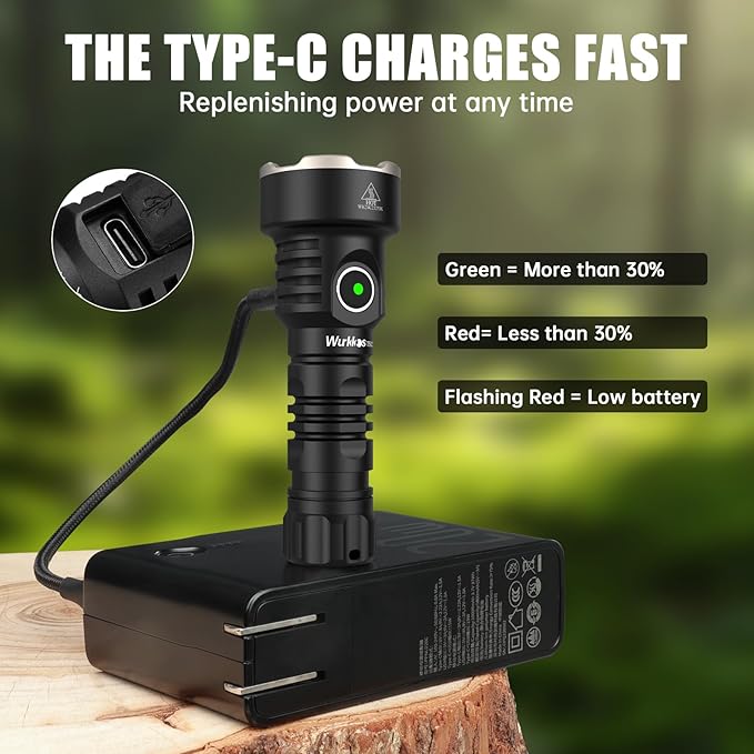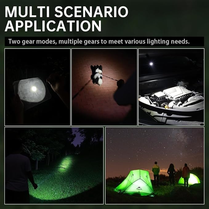 - 【USB-C Rechargeable Flashlight】Our powerful flashlight can be replenished with the included USB-C cable. Lights up green for more than 30% power, red for less than 30%, and flashes red for low battery. And it features anti-reverse installation function protected circuit to ensure safety.