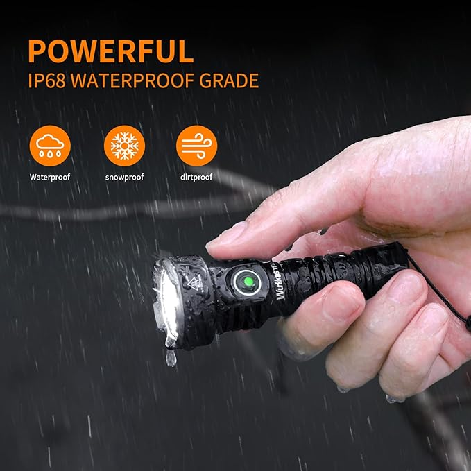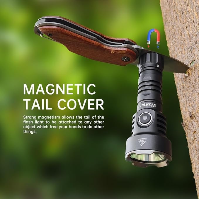 - 【Magnetic Flashlight】Wurkkos TS12 Rechargeable Flashlight with powerful magnet base, allow you fix this led flashlight on any metal surface to really free your hands, suitable for outdoor survival activity such as camping hiking travel, night walking or other emergency situations!