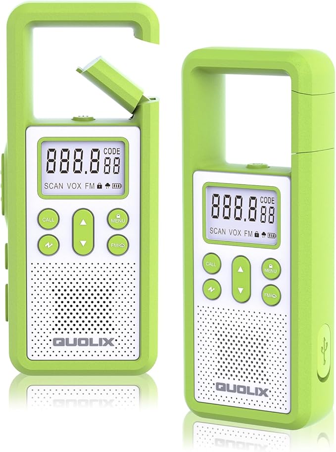 - 【FM & Compatibility】Features automatic channel scanning and a built-in FM shortwave radio so you can listen to news and entertainment from anywhere. Quolix walky talky compatible with most FRS wireless radios on the market, so you can use it to keep in touch with friends and family during your outdoor adventures.