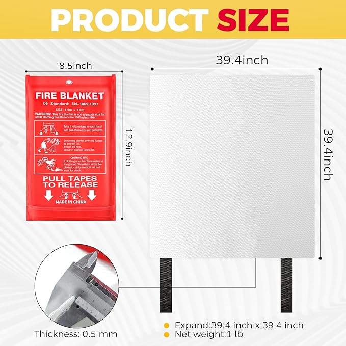 - Durable and Reusable: Made from high-quality, fire-resistant materials, this fire extinguisher for home is built to last. This emergency fire blanket can be reused after washing and inspecting it for damage, providing long-term protection and peace of mind for you.