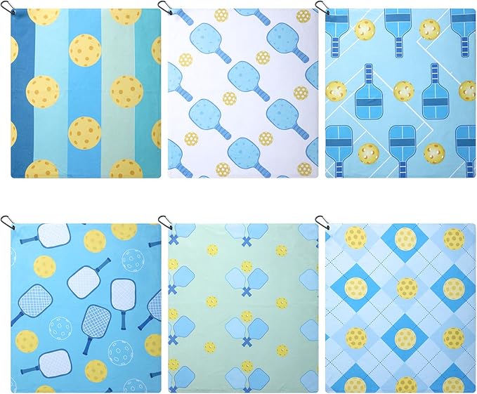 6 Pcs Dinkball Towels for Women Men Tennis Towel in Fashionable Prints 17 x 15 Inches Towel with Clip Dinkball Lover Gift Accessories