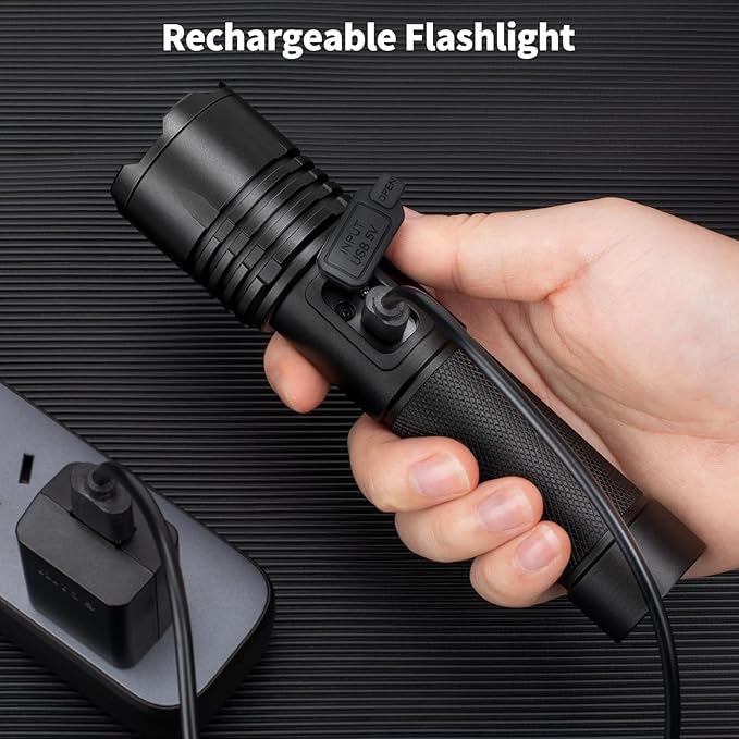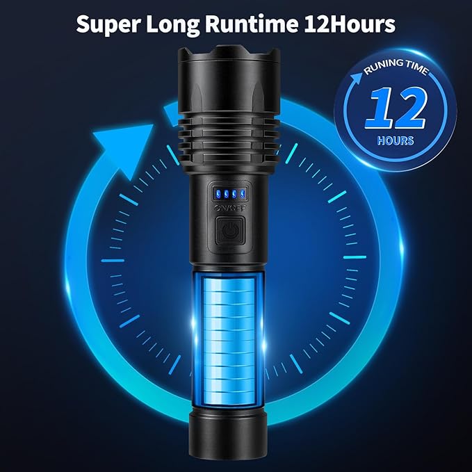 - 12 Hour Runtime - Our rechargeable flashlight comes with a ΒATTERY with a capacity of 2750mAh, which takes only 3 hours for a full charge and lasts for 12 hours. It is very portable and supports a variety of charging methods to meet your daily needs.