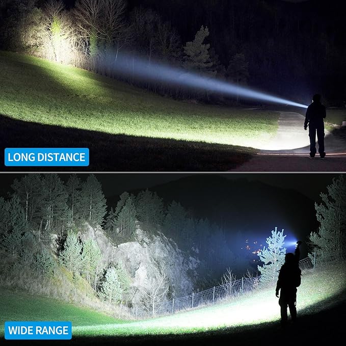 - Adjustable Head - Our led flashlights can be adjusted to illuminate up to 3,280 feet and up to 200 square meters of yard. Perfect for outdoor hiking, camping, night fishing, etc.