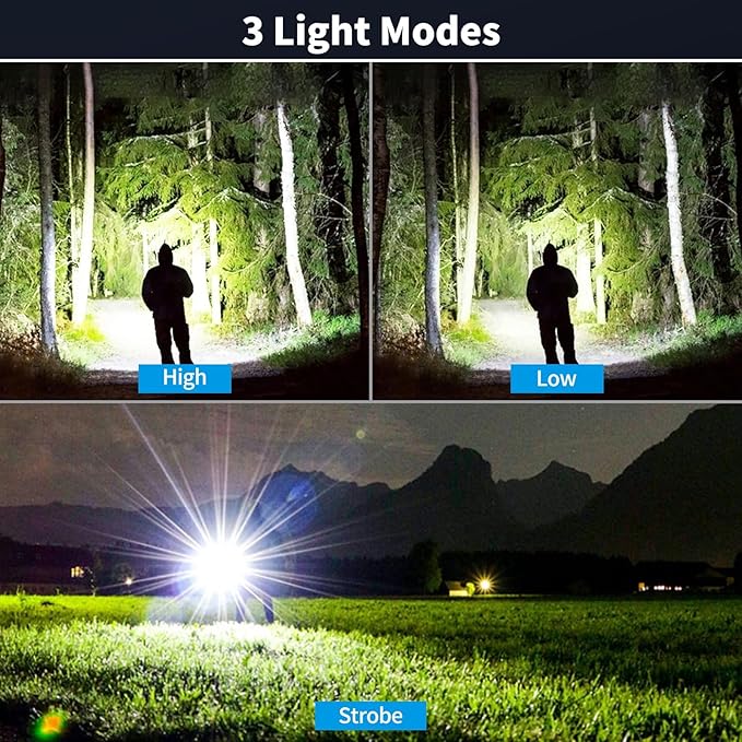 Rechargeable Flashlights High Lumen, 990000 Super Bright LED Flashlight, 12 Hour Runtime Flash Light with 3 Modes, IPX6 Waterproof for Home, Outdoor, Camping