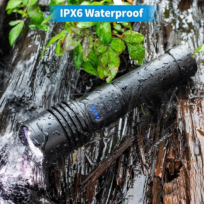 - IPX6 Waterproof - For you who often use a flashlight outdoors, the water resistance of the flashlight is very important. Our flashlight uses advanced sealing materials and sealing technology, waterproof level can reach IPX6. There is no need to worry about water affecting the normal operation of the flashlight.