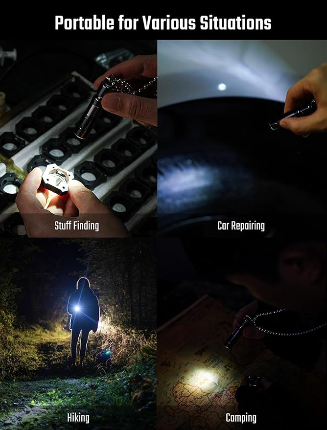 - Unique Quick-Release Tail: Our mini flashlight boasts a convenient quick-release tail and a keychain hole, making it easy to attach to keys, bags, or other gear. Its design allows for quick access, keeping your light within reach whenever needed