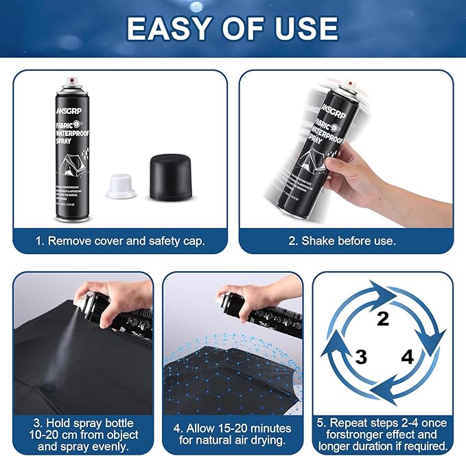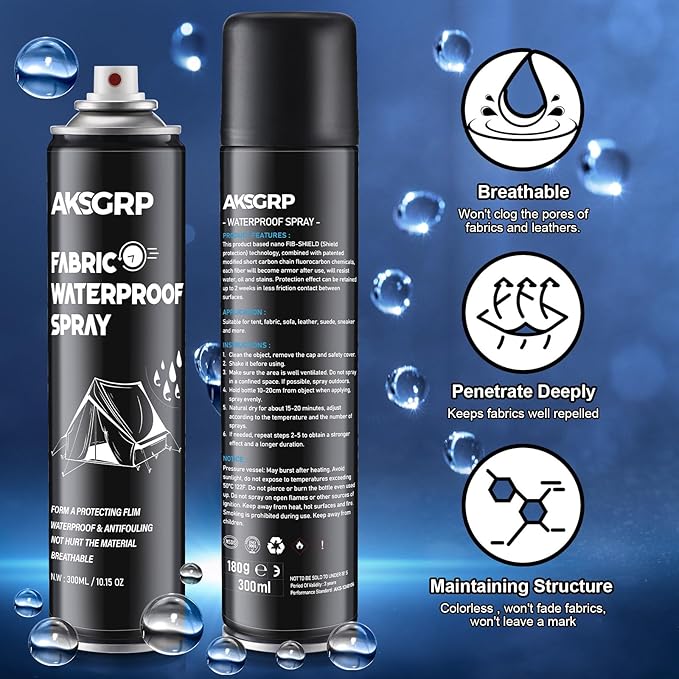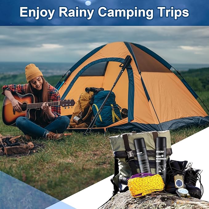 - 【Ideal For Multiple Outdoor Activities】The outdoor tent waterproofing spray is also suitable for other outdoor equipment such as outerwear, rain gear, umbrellas and more, whether it's your backpack, footwear or other camping equipment, it can be protected by our multi purpose waterproofing spray, so that your outdoor adventure can be maximized