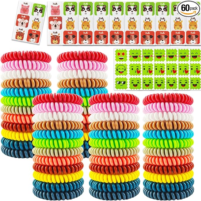 - Effective Protection: These 60 mosquito repellent bracelets and 120 stickers provide DEET-free insect and bug repellent for outdoor activities.