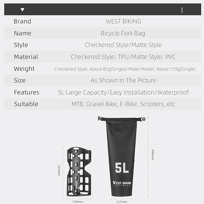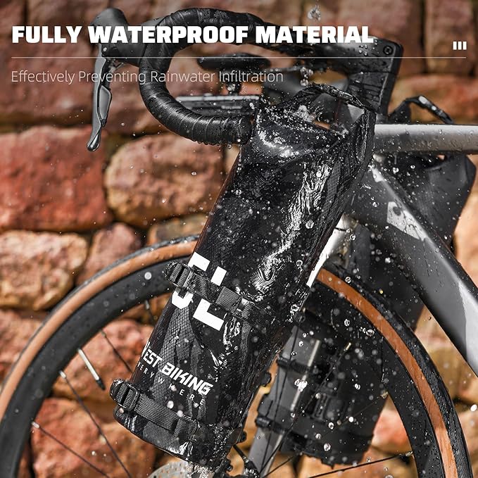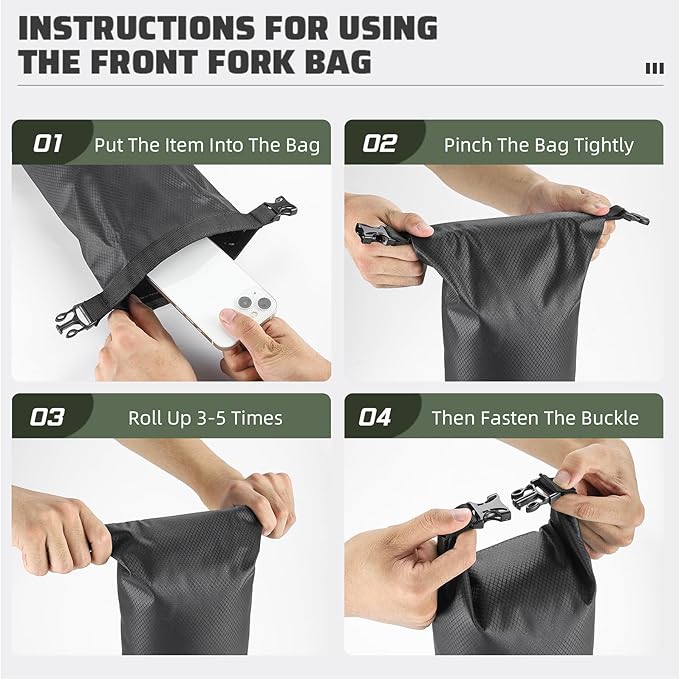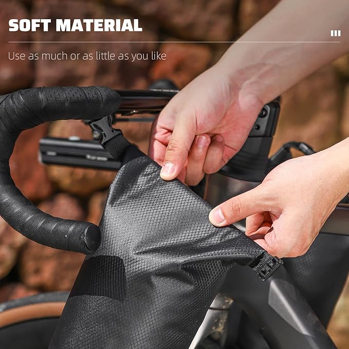- Two Material optional: The 5L bike fork bag has 2 material, you can choose Type A TPU or Type B PVC. After placing the item, the opening can be rolledup.