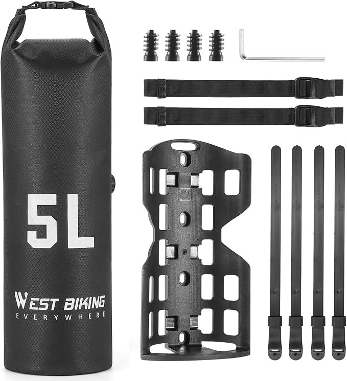 - 5L Bike Panniers Kit: This mountain bike gear bag set include 1 * Bicycle Bag,1 * Bracket,4 * Long Belts,2 * Short Belts,4 * Screws and 1 * Wrench