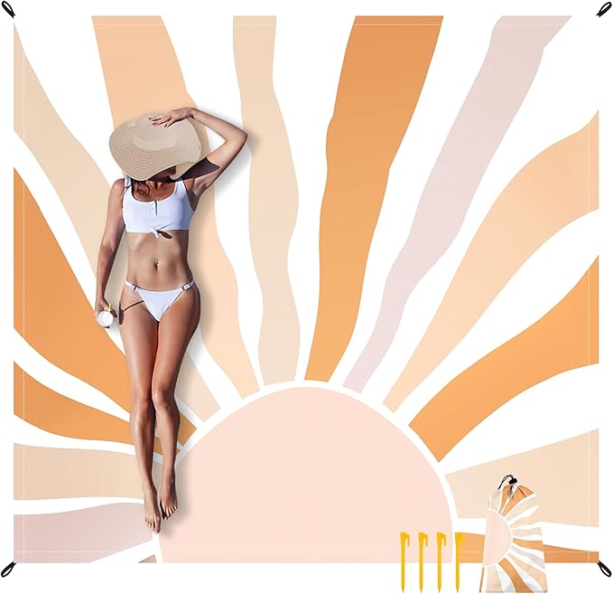 - Artistic Boho Flair: BEW's Boho orange sunburst beach blanket is more than just a blanket—it's like a painting on the sand. With a striking design and warm, sunrise-inspired hues, this vibrant and unique piece stands out as both a functional accessory and a work of art, bringing distinctive charm to any beach day.