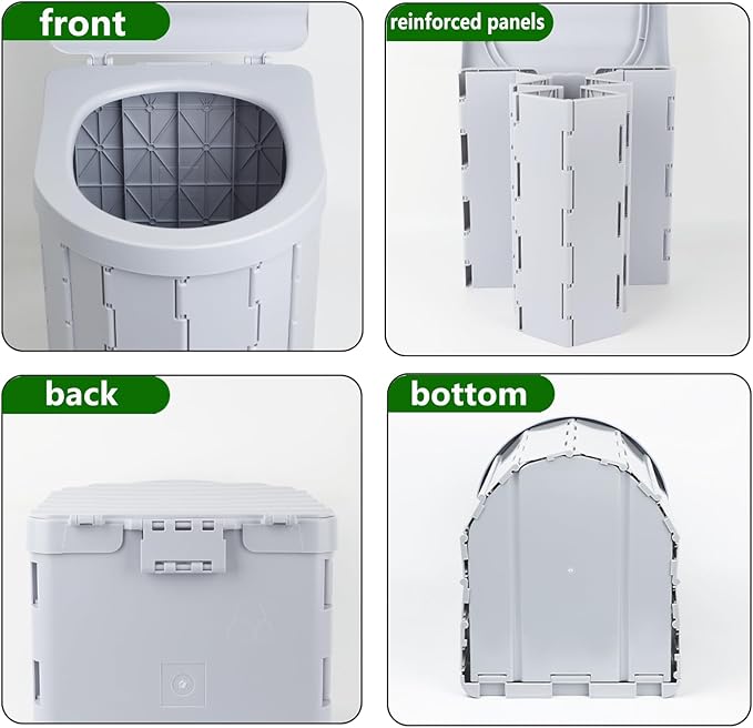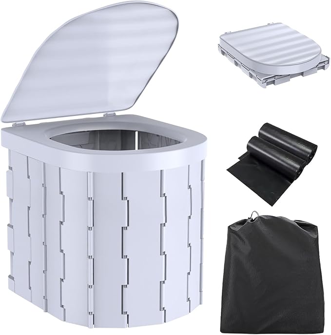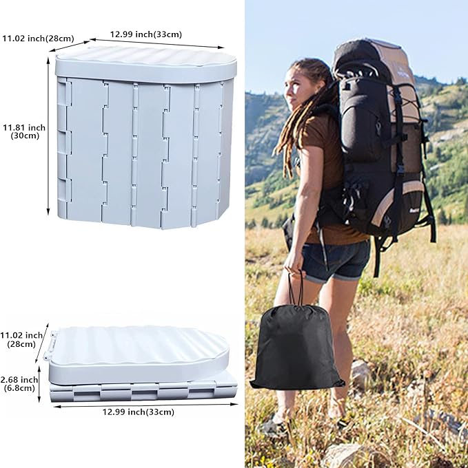 - 🚽【Easy to Clean】Portable Toilet is compatible with any 8 gallon bag for easier clean up. Before use, please put on the included plastic garbage bag to keep the toilet clean and tidy. Coming with a waterproof storage bag, it can be conveniently packed into your bag without taking much space. you can use it anywhere and anytime.