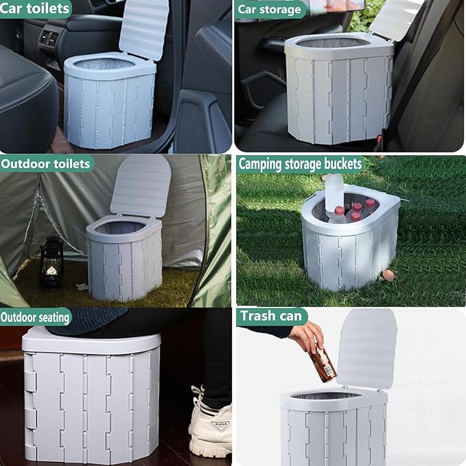 - 🚽【Multifunctional and Widely Applicable】With lid, It' not only Portable Toilet for outdoors,but also a storage and seat combination, but also as a trash can, small stool, fishing, storage box, indoor toilet for the elderly, vomiting bucket for pregnant women etc.to satisfy your different needs when taking outdoor activities.