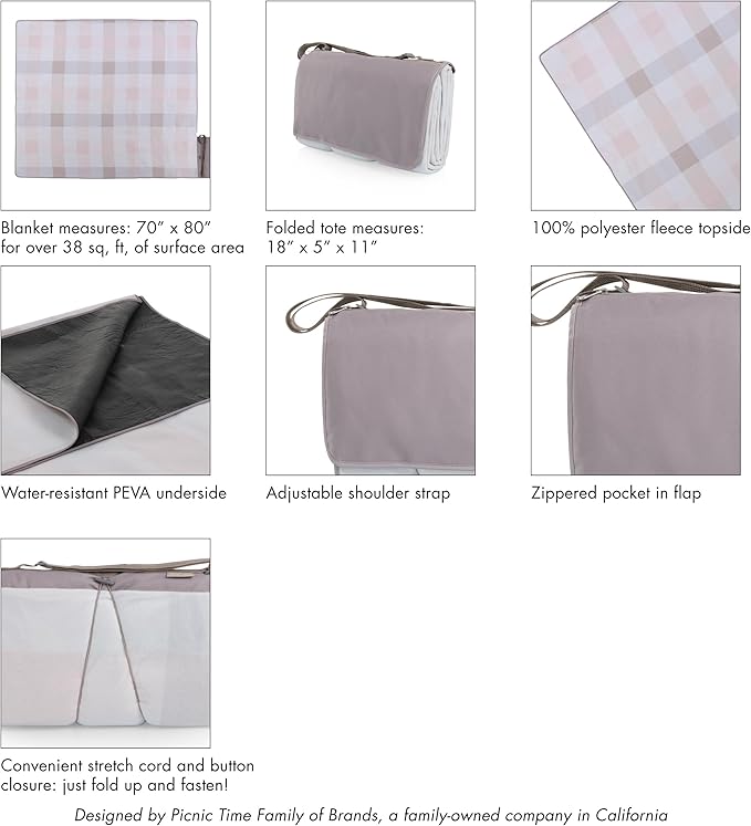 PICNIC TIME Blanket Tote XL Outdoor Picnic Blanket, Beach Blanket, Camping Blanket, (Pastel Plaid)