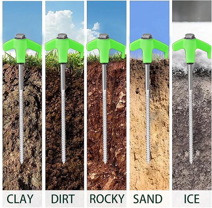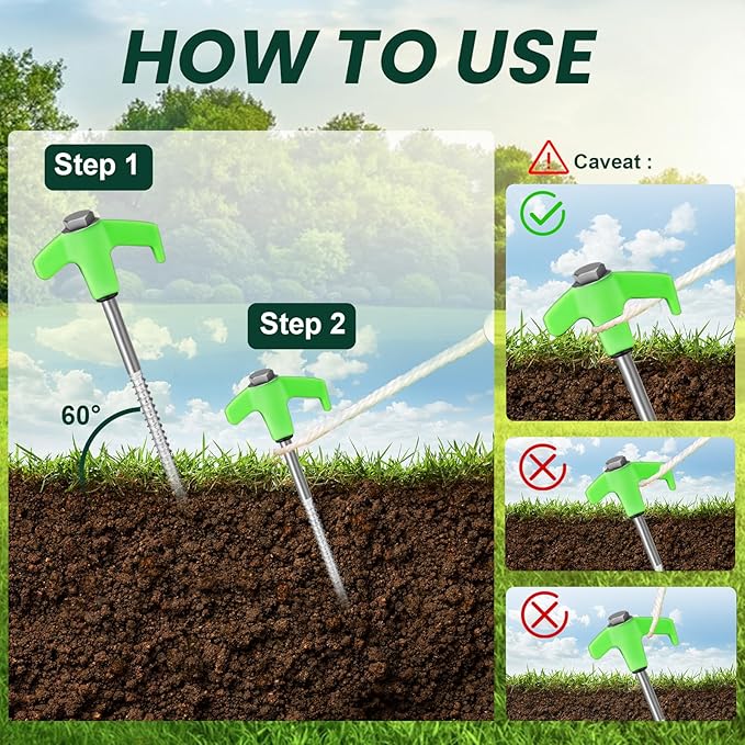 - Convenient and Practical: Our tent stakes have pointed tips that are easy to insert into hard soil, and the spiral design offers a stronger grip; With the help of a cordless drill or impact driver, these stakes will have your tents, canopy, awning or tarps grasp the ground more stable