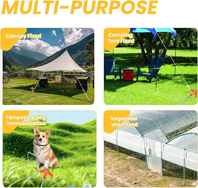 - Wide Range of Applications: The camping stakes can be applied to fix ordinary outdoor travel tents, but also can be applied to your tent, canopy, canopies, tarps, picnic mats or even to secure your dog leash, they are quite useful camping travel tools, convenient and portable