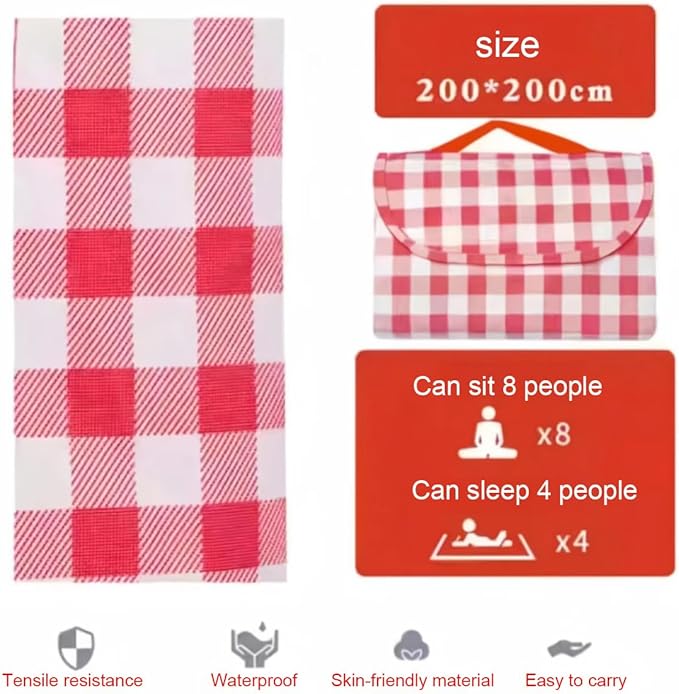 - 【Family Large Picnic Blanket】The ultra large size design of 80" * 80" provides you with sufficient usage space. This picnic mat can accommodate 3-4 people lying down or 6-8 people sitting on it simultaneously. Suitable for family outings or friends camping.