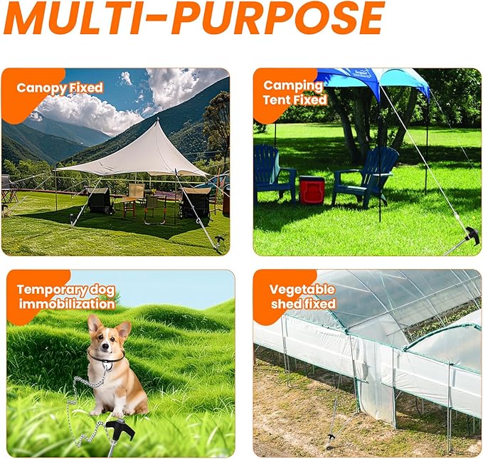 - Safe for Using: Our metal stakes offer enough strength under windy conditions and are suitable for use in grass, dirt, harder soils and sand; They are important for taking care of your outdoor equipment; Pointed items are included, it is recommended to wear tool gloves to avoid injury when using, and please keep it away from kids