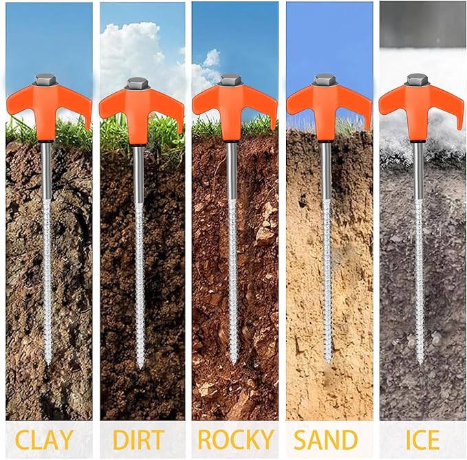 - Convenient and Practical: Our tent stakes have pointed tips that are easy to insert into hard soil, and the spiral design offers a stronger grip; With the help of a cordless drill or impact driver, these stakes will have your tents, canopy, awning or tarps grasp the ground more stable